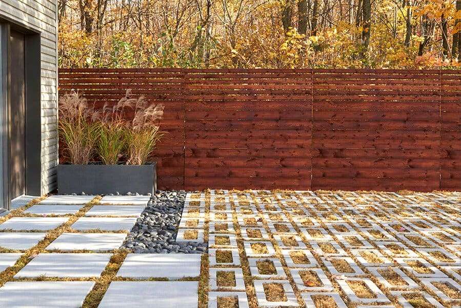 | * Ce produit peut être installé avec du gazon au travers ou bien de la pierre. *