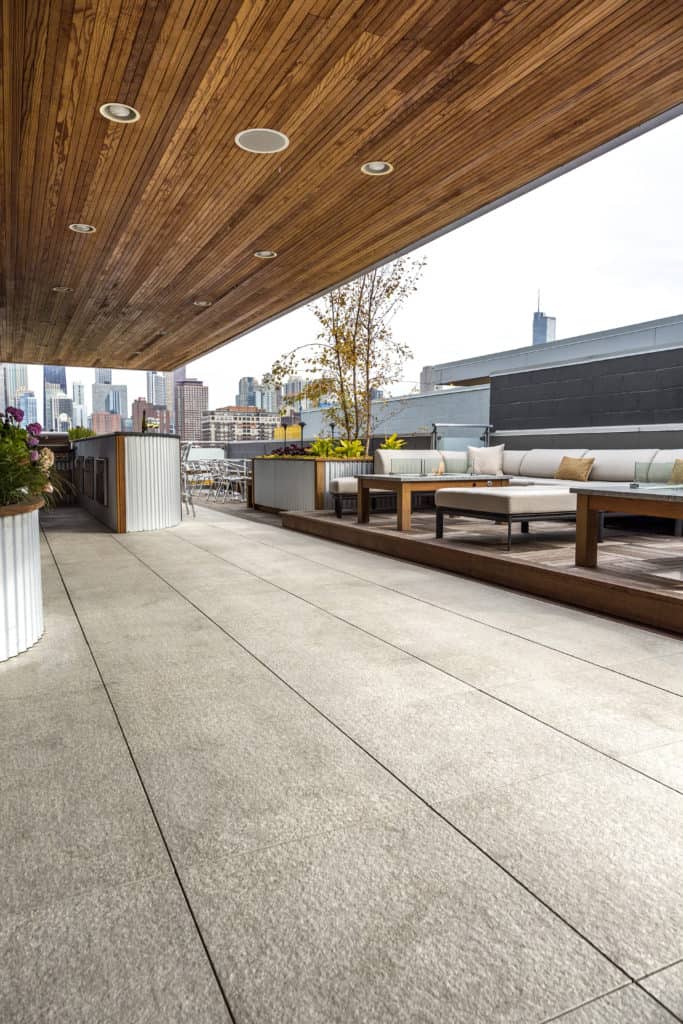 Le système Aextra20 se compose de dalles monolithiques en grès cérame parfaitement d’équerre et rectifiées, avec une finition de surface antidérapante.